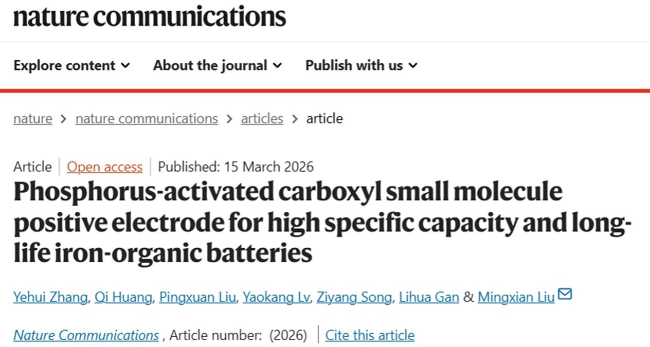 公司刘明贤教授团队长期致力于高效储能材料研究并应用于新能源电池开发,研究团队近期提出磷激活羧基小分子策略,通过精妙的分子工程设计,解锁了磷元素的氧化还原活性,实现了铁-有机电池性能的重大突破。研究团队设计三(4-羧基苯基)膦(PTBA)和三(4-羧基苯基)胺(NTBA)双极小分子正极材料,通过调控磷(P)和氮(N)电子给体基团,实现分子电荷分布与能量水平的精准调控,以及羧基/磷活性位点的高效协同,有效解决了有机小分子正极活性位点利用率不足及稳定性较差的难题,构建了高比容量和长循环寿命的水系铁-有机电池。相关成果以“Phosphorus-Activated Carboxyl Small Molecule Positive Electrode for High Specific Capacity and Long-Life Iron-Organic Batteries”为题,在线发表于《自然·通讯》(Nature Communications)。