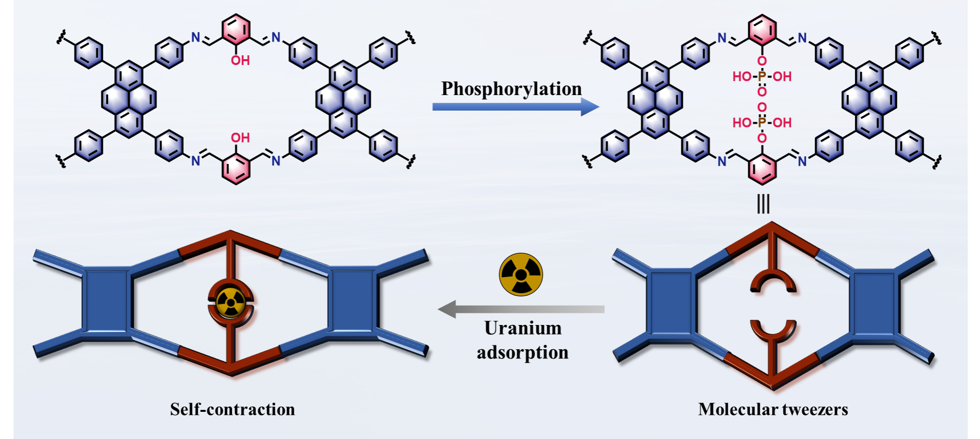 2026.03.17闫冰教授团队基于一维共价有机框架(1D COFs)内部位点设计构建磷酸盐分子镊子,实现了对铀的高效特异性捕获,研究成果发表于《先进功能材料》