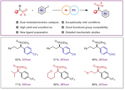 Professor Xu Tao's research team makes important progress in the asymmetric synthesis of α-aryl phosphates via nickel and photoredox catalysis, publishing the relevant outcomes in the Journal of the American Chemical Society.