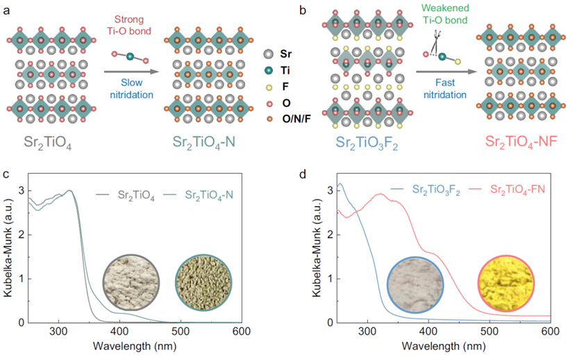Photocatalytic overall water splitting is a promising approach for a sustainable hydrogen provision using solar energy. For sufficient solar energy utilization, this reaction ought to be operated based on visible-light-active semiconductors, which is very challenging. In this work, an F-expedited nitridation strategy is applied to modify the wide-bandgap semiconductor Sr2TiO4 for visible-light-...
