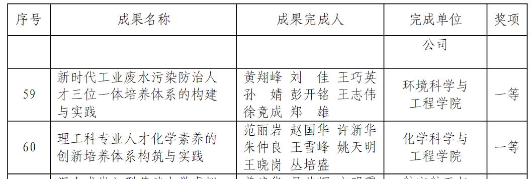 范丽岩、赵国华、许新华、朱仲良、王雪峰、姚天明、王晓岗、丛培盛团队的项目《理工科专业人才化学素养的创新培养体系构筑与实践》获得一等奖。