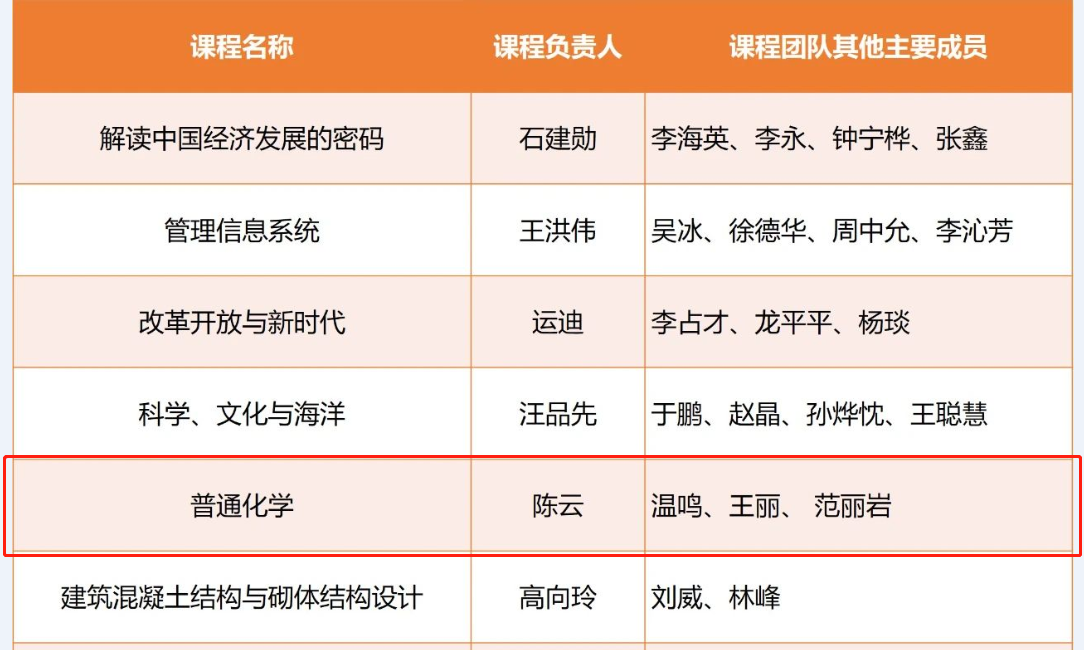 近日,教育部公示了第二批国家级一流本科课程认定结果。best365中国官方网站此次共有55门课程入选,公司陈云老师作为负责人的《普通化学》线上课程名列其中,团队其他主要成员包括温鸣、王丽、范丽岩老师。