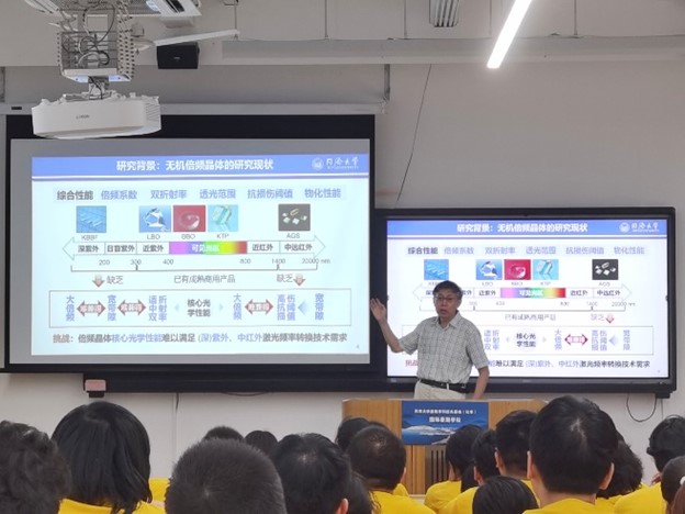 当晚,欧洲科学院院士、德国国家工程院院士、国家特聘专家、同济长聘特聘教授张弛以“无机倍频晶体的研究现状”为主题进行了专题报告并与在场员工进行了热烈的沟通交流。
