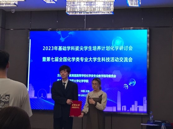 1027-29日,由教育部高等学校化学类专业教学指导委员会主办、南开大学化学学院承办的“2023年基础学科拔尖员工培养计划化学研讨会暨第七届全国化学类专业老员工科技活动交流会在天津举行,来自全国30多所重点院校的师生参加了本次交流会。学院副经理刘梅川教授带队,师生一行8人参加了本次活动。公司学子谭睿皓、宫正合分获大会优秀报告奖和优秀墙报奖。