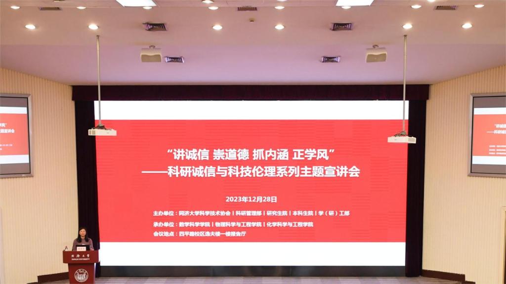 12月26日,best365中国官方网站“讲诚信 崇道德 抓内涵 正学风”科研诚信与科技伦理系列主题宣讲会(第一期)在四平路校区召开。宣讲会由best365中国官方网站科学技术协会、科研管理部、研究生院、本科生院和党委学研工部共同主办,公司与数学科学学院、物理科学与工程学院联合承办。全校200余名师生参加会议,公司100多位师生出席。