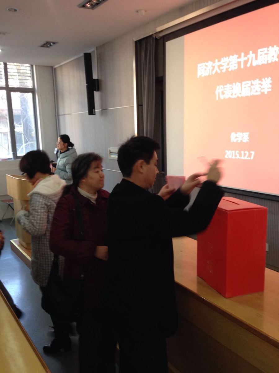 12月7日中午,化学系全系教职工大会在化学馆241会议室举行,会议选举产生了新一届校教代会代表人选。