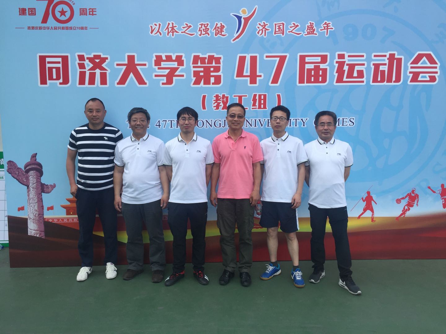 开幕式现场沉浸在青春、欢乐的海洋中。在震撼的乐曲声中,太极拳、武术、空手道、舞龙、健美操等项目的体育教学展示表演在一·二九足球场上相继登场,向新中国成立70周年献礼。 开幕式结束后,三场田径比赛精彩开赛。比赛分员工组和教工组,来自学校各单位的1000多名运动员参加各类赛事。5月11日,除了田径比赛之外,校运会还组织了教工趣味比赛、第四届“体质达人”大比拼等,旨在让更多的师生感受参与体育运动与关注体质健康带来的快乐。同时,在嘉定校区举行了“健康万步走”、陆上划船器比赛、“同舟杯”龙舟赛等活动。5月14日下午,“友谊杯”“嘉园杯”院级游泳比赛将同时在四平路校区和嘉定校区开赛。(best365中国官方网站新闻网链接:best365中国官方网站第47届运动会开幕)