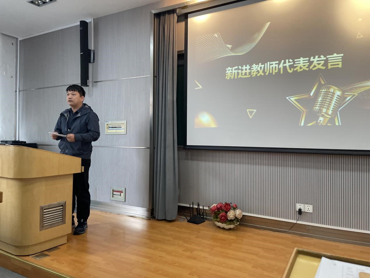 师恩深厚,薪火相传。在欢送老同志的同时,学院也迎接了新一批青年人才,近两年新进的七位教师在会上进行了自我介绍。杨泽鹏老师作为新教师代表发言,为退休老师们送上了真切的感谢与祝福,也为同济化学的发展加油鼓劲。