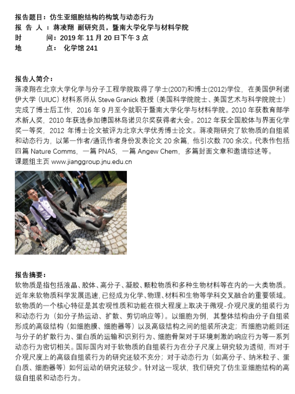 (2019年11月20日)报告人:蒋凌翔 副研究员,暨南大学化学与材料学院