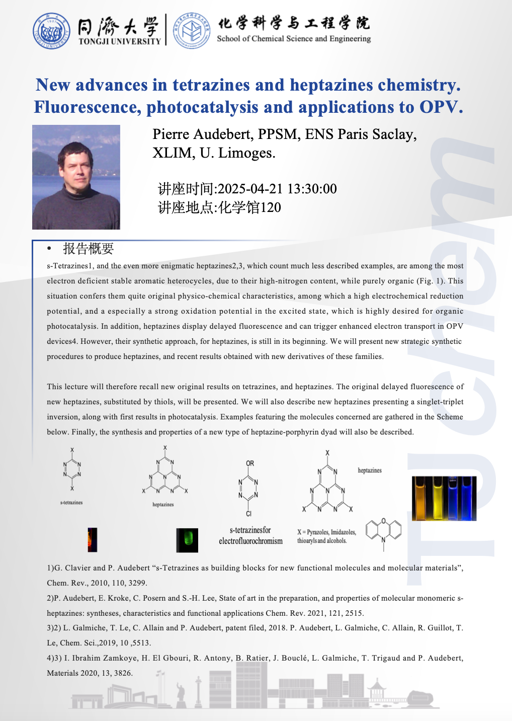 除了科研工作外,皮埃尔·奥德贝尔还在法国及海外教授电化学、高分子化学及材料科学等课程,教学足迹遍及韩国、波兰、中国、柬埔寨和越南等地。他的研究领域涵盖电化学、有机化学及材料科学,特别关注具有特殊电化学和光物理特性的含氮化合物。