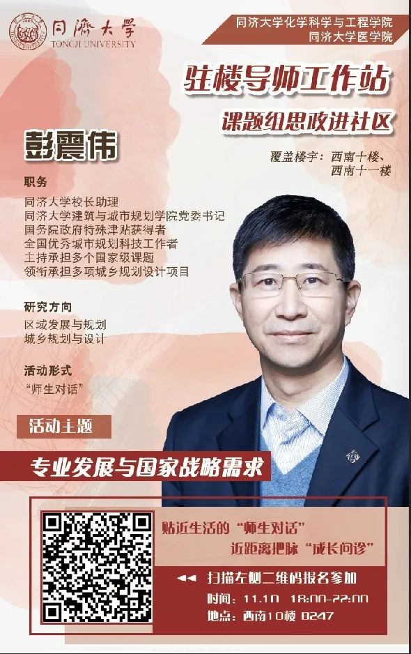 而这一次,我们邀请到了董事长助理、建筑与城市规划公司党委书记彭震伟教授来到社区,来一场“师生对话”,为大家解答有关“专业发展与国家战略需求”的疑问。
