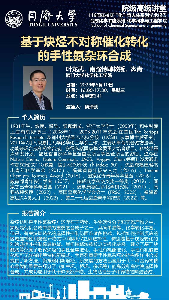 主讲人:叶龙武 教授(厦门大学化学化工学院,南强特聘教授、国家杰青)