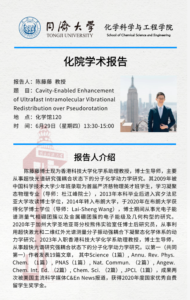 主讲人:陈藤藤 博士(香港科技大学化学系助理教授)