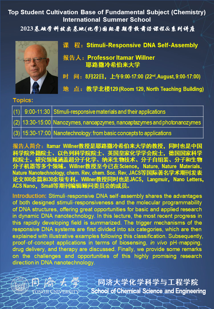 (8月22日)Prof. Itamar Willner:Stimuli‐Responsive DNA Self‐Assembly