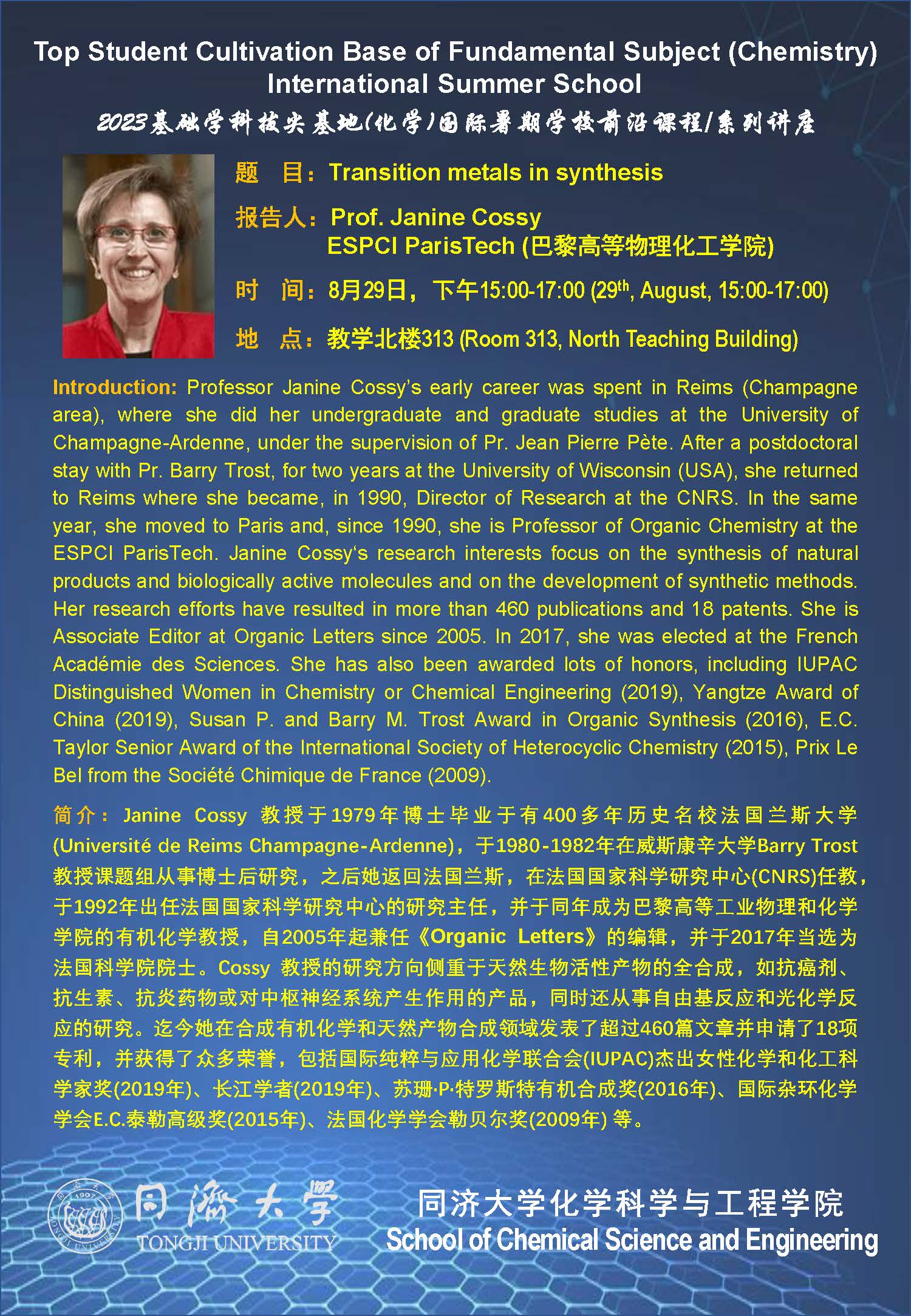 (8月29日)Prof.Janine Cossy:Transition metals in synthesis