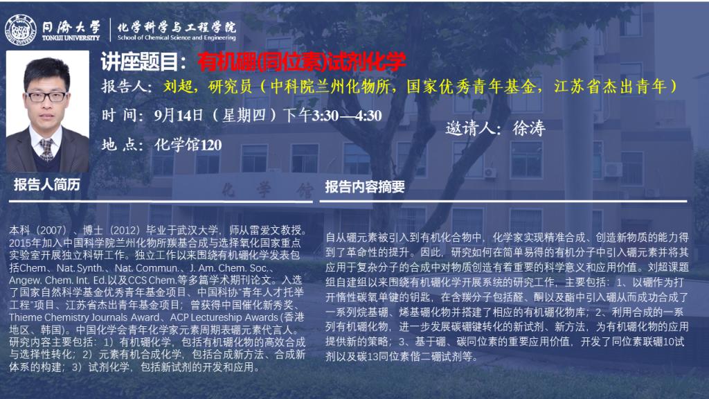(9月14日)刘超研究员:有机硼(同位素)试剂化学