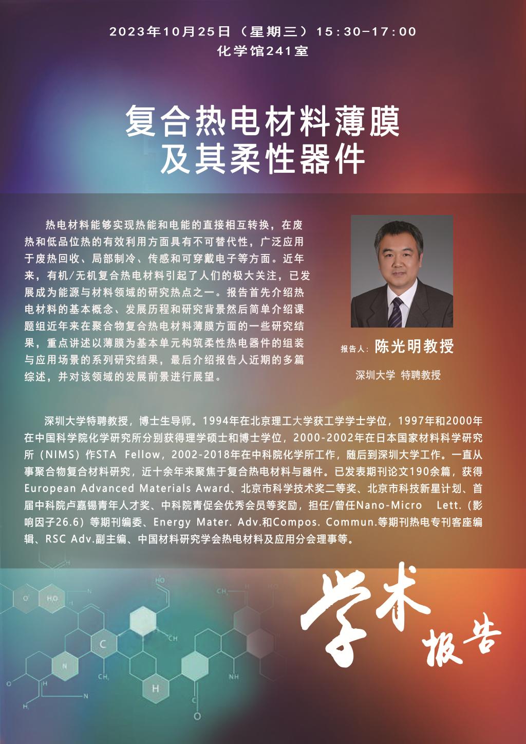 (10月25日)陈光明教授:复合热电材料薄膜及其柔性器件