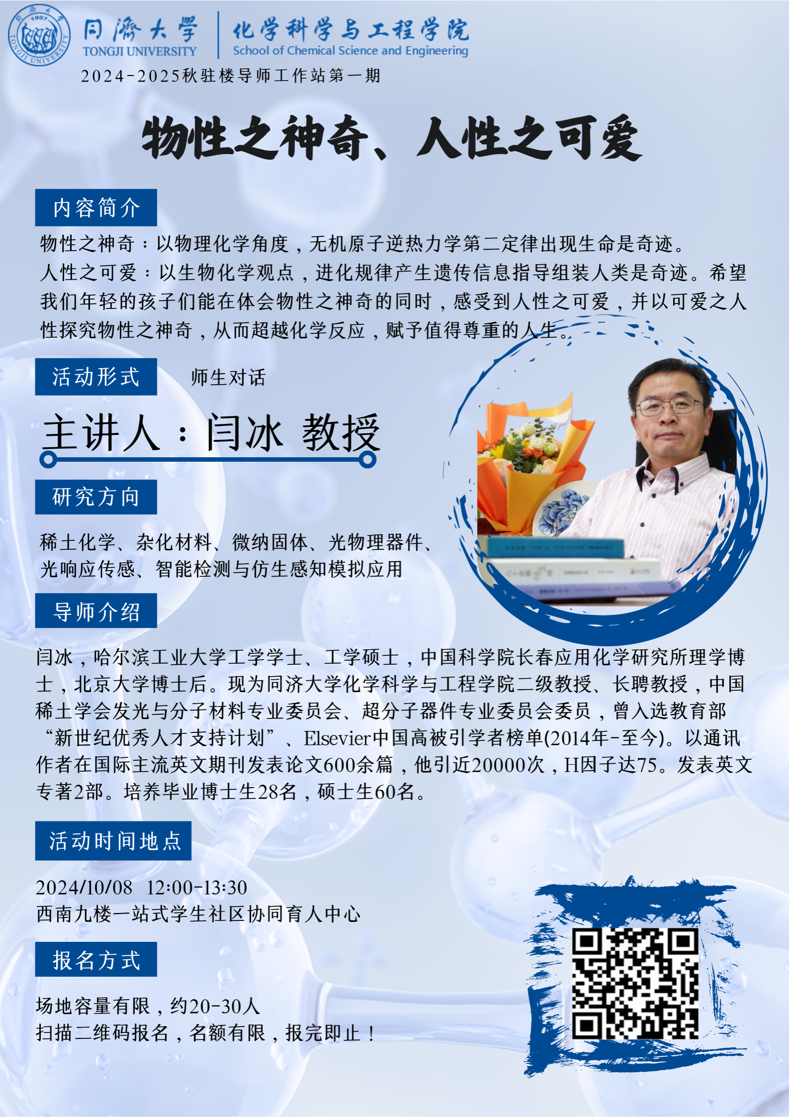 (10月8日)2024年秋季学期驻楼导师工作站1——闫冰教授:物性之神奇、人性之可爱