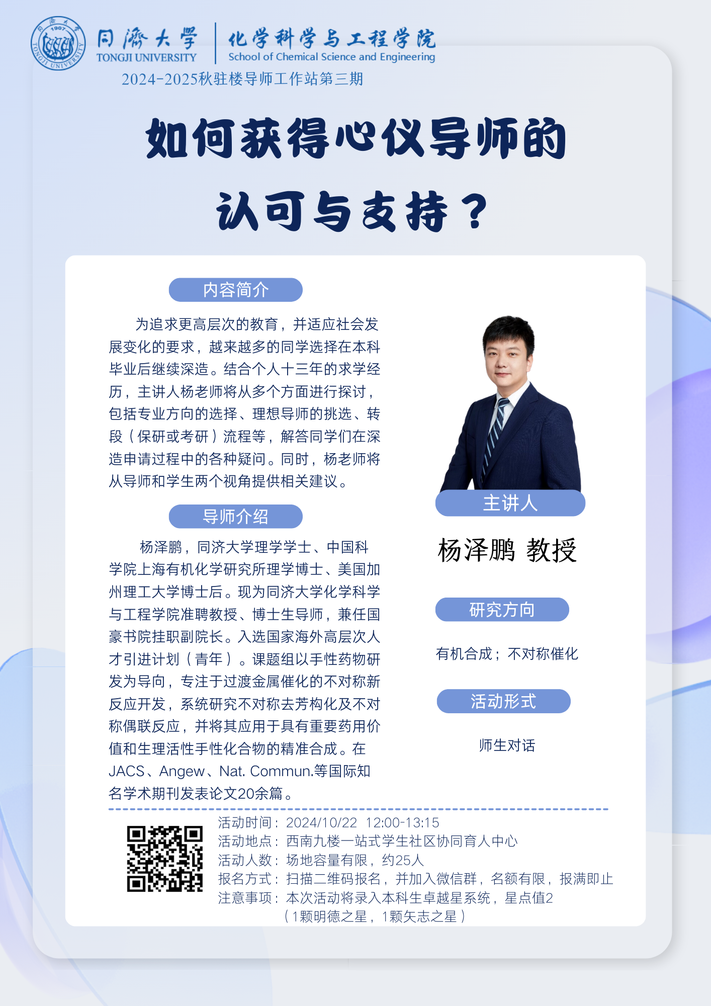 (10月22日)2024年秋季驻楼导师工作站3——杨泽鹏 教授:如何获得心仪导师的认可与支持?