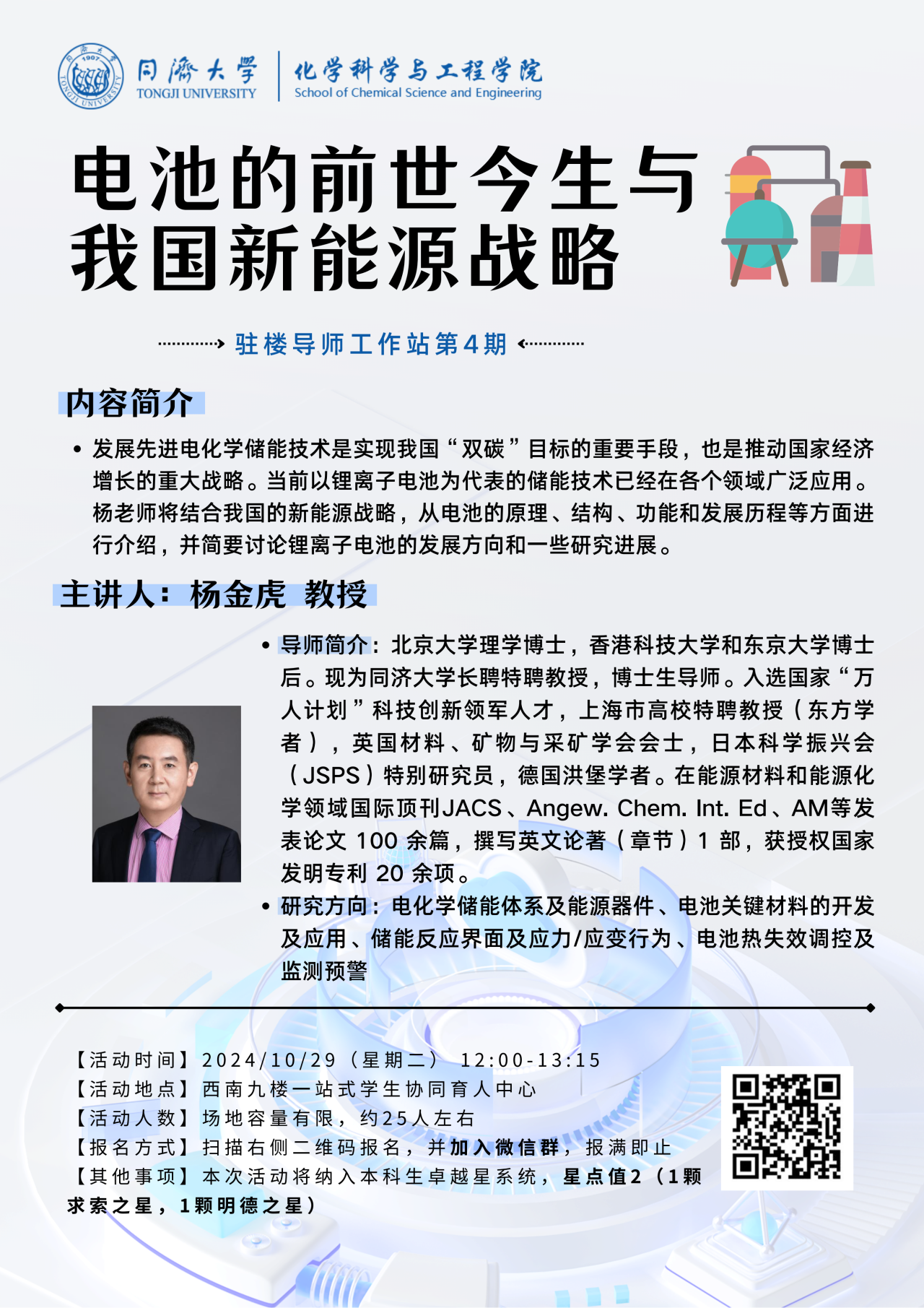(10月29日)2024年秋季驻楼导师工作站4——杨金虎 教授:电池的前世今生与我国新能源战略