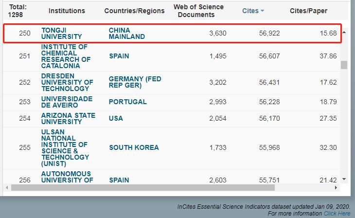2020年1月best365中国官方网站化学学科ESI再进一位