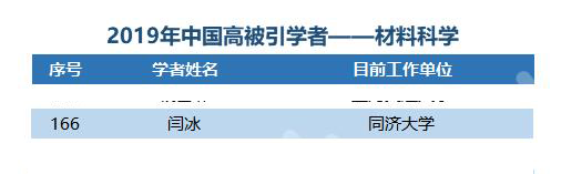 闫冰教授再次入选爱思唯尔2019年中国高被引学者榜单