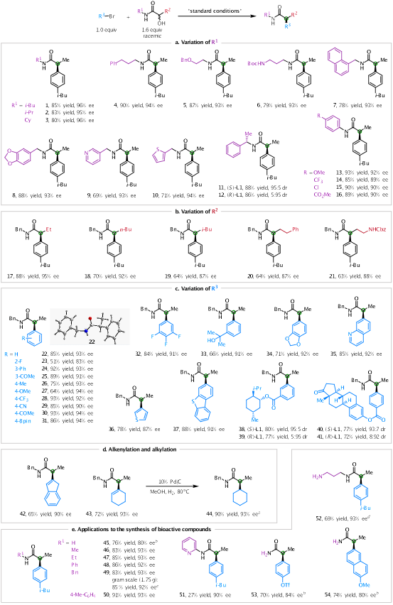 对映体富集的α-芳基酰胺结构是药物和生物活性分子中普遍存在的片段,开发简单高效的方法合成这类分子具有重要的意义。乳酸作为一种可再生的生物质资源,年产量已超过100万吨。因此,通过不对称催化方法将乳酸衍生物脱氧转化为高附加值的手性α-芳基酰胺化合物是一种有潜力的方案。然而,碳—氧键的高解离能给这一转化带来了巨大的挑战。