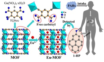 随着现代工业的发展,大量有毒有害物质进入环境中,其在水体、大气及食物中的残留长期威胁着人类的健康。因此,建立环境污染物的快速检测技术,对于环境污染风险防控、保护人体健康及生态环境,都有着至关重要的作用。稀土发光MOFs因结合了稀土离子优异的发光性能和金属有机骨架(MOFs)多样的结构特性而被广泛用作荧光探针检测环境污染物。目前报道的绝大多数Ln-MOFs荧光探针均是对环境污染物的外暴露检测即环境监测。但环境监测不能反映通过不同途径(呼吸道、消化道和皮肤等)接触有害物质的总量,且环境中有害物质水平并不等于人体实际接触和吸收的水平,因而环境监测不能有效地反映个人差异而导致的吸收区别。作为环境监测的有效补充,生物监测可提供人体接触有害化学物质的内剂量,能揭示污染物与人体健康的内涵实质,因此在环境健康的风险评价中具有十分重要的实用价值。 闫冰教授课题组一直从事稀土光功能杂化材料和微纳固体的研究工作,近年来专注稀土功能化晶体基元杂化材料体系的组装、光功能集成、器件及传感应用研究,发表了多篇论文(Chem. Commun. 2014, 50, 9969-9972、13323-13326、15235-15238、15443-15446; 2015, 51, 7737-7740、14509-14512; 2016, 52, 2265-2268. J. Mater Chem. A 2014, 2, 13691-13697、18018-18025; 2015, 3, 4788-4792; 2017, 5, 2215-2223. J. Mater. Chem. C 2014, 2, 5098-5104、5526-5532、6758-6764、7411-7416; 2015, 3, 2823-2830、7038-7044、8413-8418、9353-9358; 2016, 4, 1543-1549、8514-8521. Nanaoscale, 2015, 7, 4063-4069; 2016, 8, 2881-28861、2047-12053. Inorg. Chem. 2014, 53, 3456-346; 2016, 55, 11831-11838等)。最近他们尝试将Ln-MOFs作为荧光探针用于对有机化合物甲苯、多环芳烃等在尿液中的生物标志物的检测,实现了对这些有害物质高效的生物监测。相关研究成果以“Determination of Urinary 1-Hydroxypyrene for Biomonitoring of Human Exposure to Polycyclic Aromatic Hydrocarbons Carcinogens by a Lanthanide-functionalized Metal-Organic Framework Sensor”为题发表在国际知名期刊《Advanced Functional Materials》(Adv. Funct. Mater. 2017, 27, 1603856, 期刊影响因子11.382)上。课题组博士研究生郝继娜为论文第一作者,她先后获得两次博士生国家奖学金,以第一作者已发表的8篇代表性论文影响因子累计超过60,获得2016年度best365中国官方网站研究生学术先锋亚军。