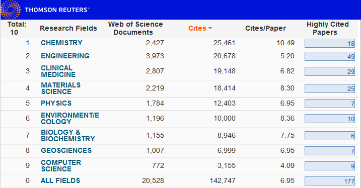 据悉,3月份国内ESI百强高校中,北京大学以662078次总被引次数继续领跑,清华大学以601256次总被引数位居其次,浙江大学以近60万次位居第三,上海交通大学526594次位列第四,复旦大学以480735次位列第五。六至十名分别是:中国科学技术大学、南京大学、中山大学、北京协和医学院和山东大学。本次排名与2016年1月排名数据对比,公司各学科世界排名比例(排名/上榜机构数)指标均有提升;各学科论文总数、引文总数、篇均引文数指标均有提升;世界总排名649位,提升4名,国内排名第29位,物理学再次进入排名。