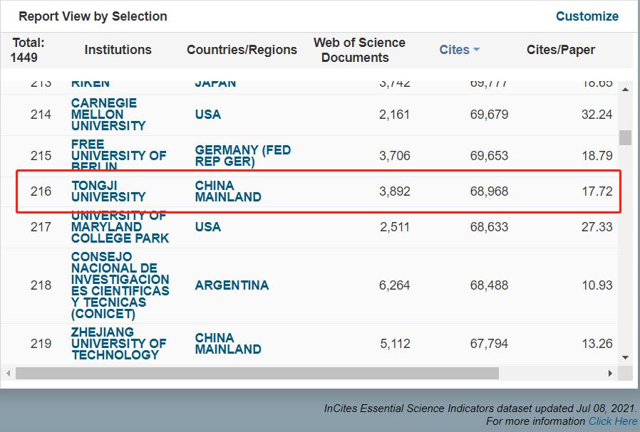 2021年7月best365中国官方网站化学学科ESI国际排名继续提升