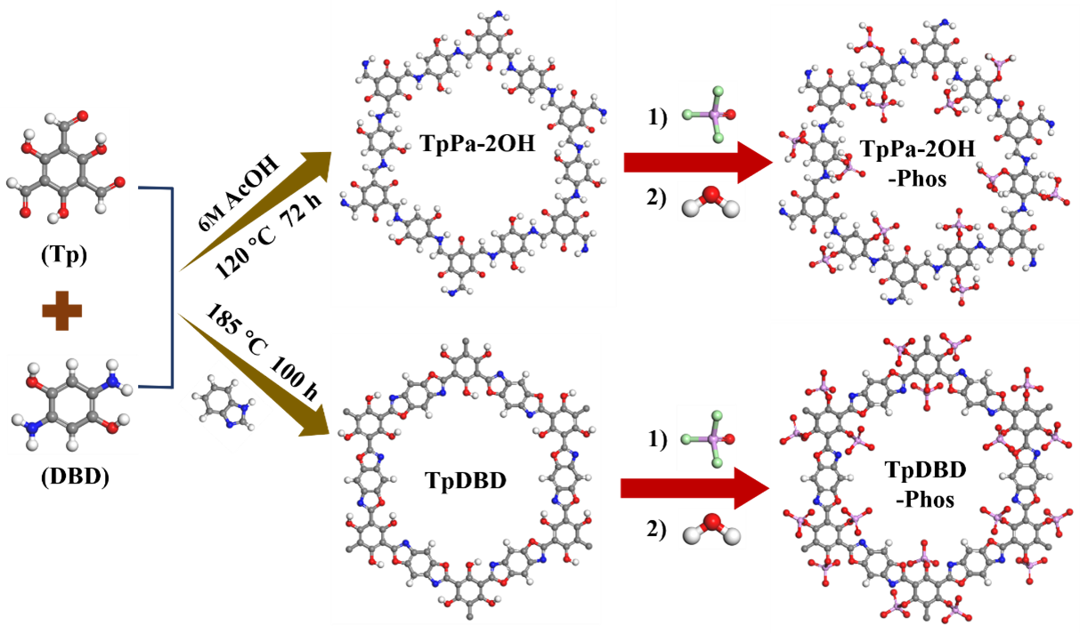 TpPa-2OH-Phos和TpDBD-Phos合成示意图