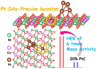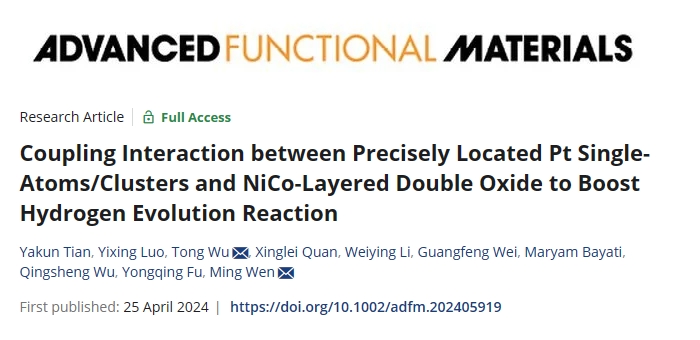碱性电催化分解水是工业上大规模生产高纯度氢最高效、最环保的方法之一,其中高效经济的电催化剂一直是工业上追求的关键目标。单原子(SA)催化剂由于具有原子效率高、电子结构独特、配位环境易于调节等特点,显示出高活性和低成本的优势,近年来受到了极大的关注。层状双金属氧化物(LDOs)因其二维平面比表面积大、稳定性优异,可以作为贵金属SA催化剂的适宜载体。金属氧化物结合Pt SA催化剂在碱性析氢反应(HER)中虽已表现出巨大的潜力,但由于Pt和载体之间的电子相互作用不足而受到严重限制。温鸣教授团队积极探索解决方案,利用双离子刻蚀结合原位相变技术,实现了精准定位单原子催化促进析氢反应,揭示了单原子的精确定位对设计高效催化剂的重要性,相关研究成果“Coupling Interaction Between Precisely Located Pt Single-atoms/clusters and NiCo-Layered Double Oxide to Boost Hydrogen Evolution Reaction”近日在线发表于材料领域著名期刊《先进功能材料》(Advanced Functional Materials)。