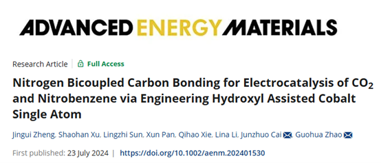 best365中国官方网站赵国华教授团队通过设计羟基辅助钴单原子首次实现了在水相中电催化二氧化碳和硝基苯氮双耦联碳成键合成N,N二甲基苯胺,并利用DFT计算、原位同步辐射、原位红外光谱和原位在线质谱相结合详细的探究了C-N-C成键的反应机理。这项工作为同时处理温室气体CO2和含氮污染物提供了新的思路也为长链高附加值有机氮化物的绿色合成提供了新见解,相关成果以“Nitrogen Bicoupled Carbon Bonding for Electrocatalysis of CO2 and Nitrobenzene via Engineering Hydroxyl Assisted Cobalt Single Atom”为题发表于国际知名期刊《先进能源材料》(Advanced Energy Materials)。
