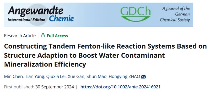 赵红颖教授团队构建基于结构适配的串联类芬顿反应体系以提高水污染物矿化效率,研究成果发表于《德国应用化学》