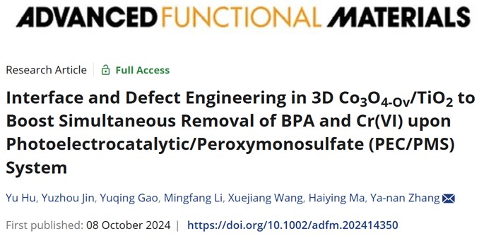 张亚男长聘副教授团队开发高效光电极材料同步去除复合污染物,研究成果发表于《先进功能材料》