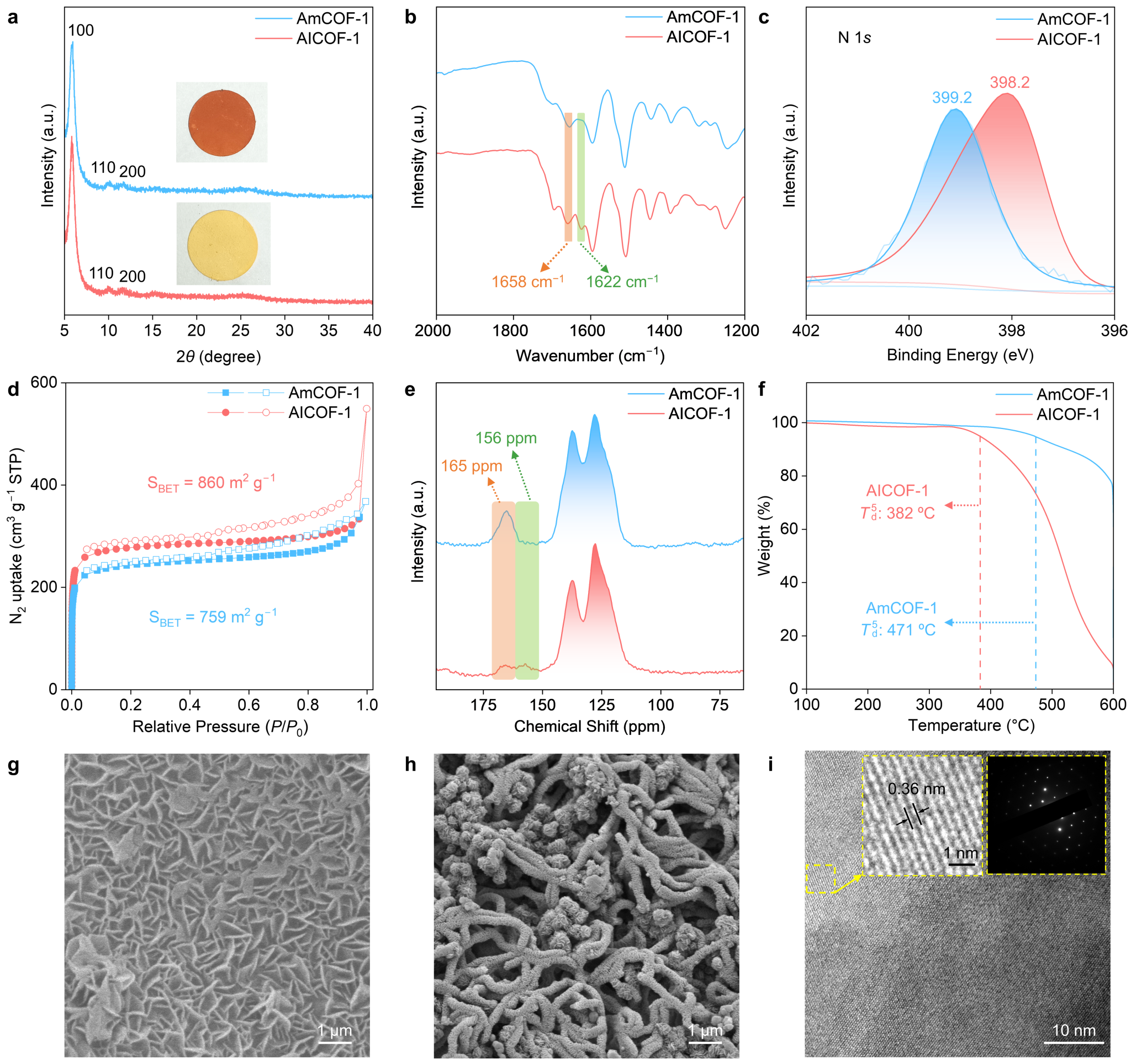 通过PXRD、FTIR、XPS、SEM、CP/MAS 13C NMR、SAXs和TEM等表征手段证明了AICOF-1膜和AmCOF-1膜的成功制备,AmCOF-1膜在兼具良好结晶性的同时也展现出特殊的图灵结构和良好的稳定性和完整性。