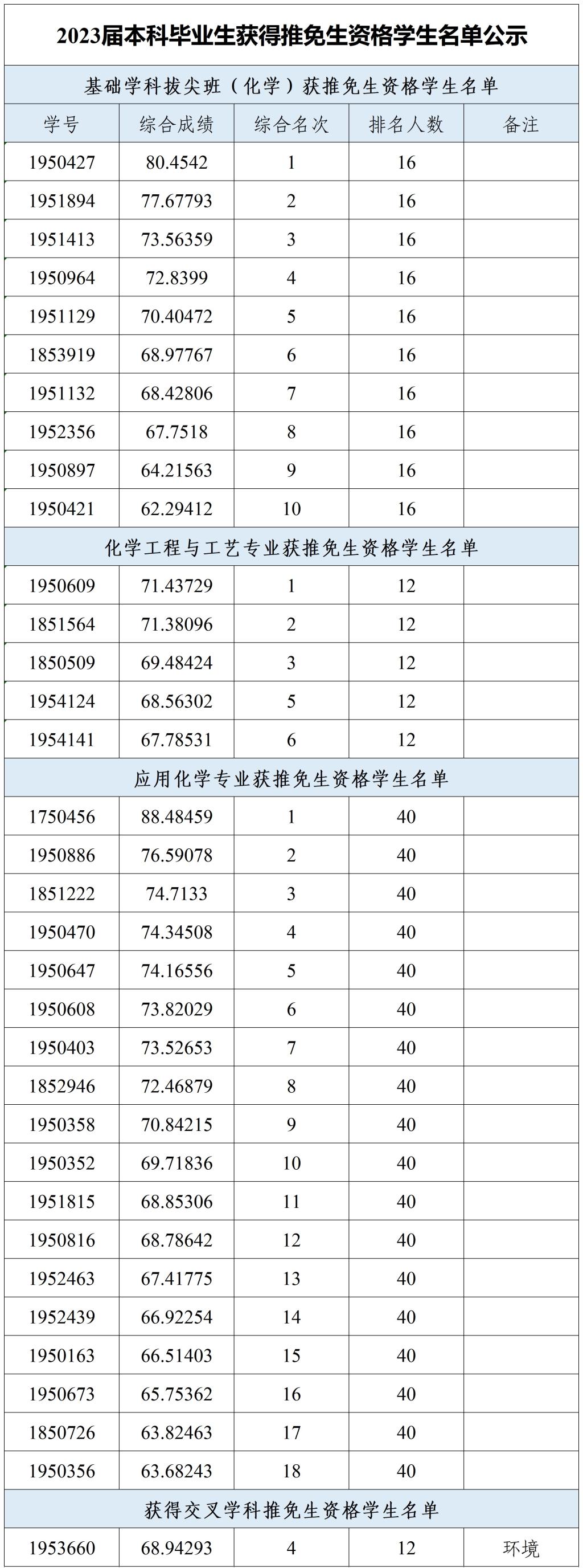 附:2023届本科毕业生获得推免生资格员工名单公示