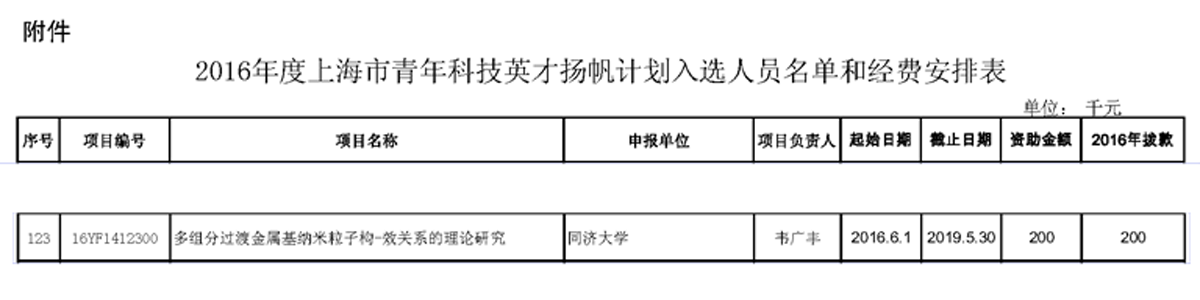 日前,上海市科学技术委员会正式公示了2016年上海市青年科技英才扬帆计划拟资助人员名单,本年度共遴选出160人拟予资助,best365中国官方网站6人入选(此外,best365中国官方网站附属医院4人入选),其中我系助理教授韦广丰名列其中。