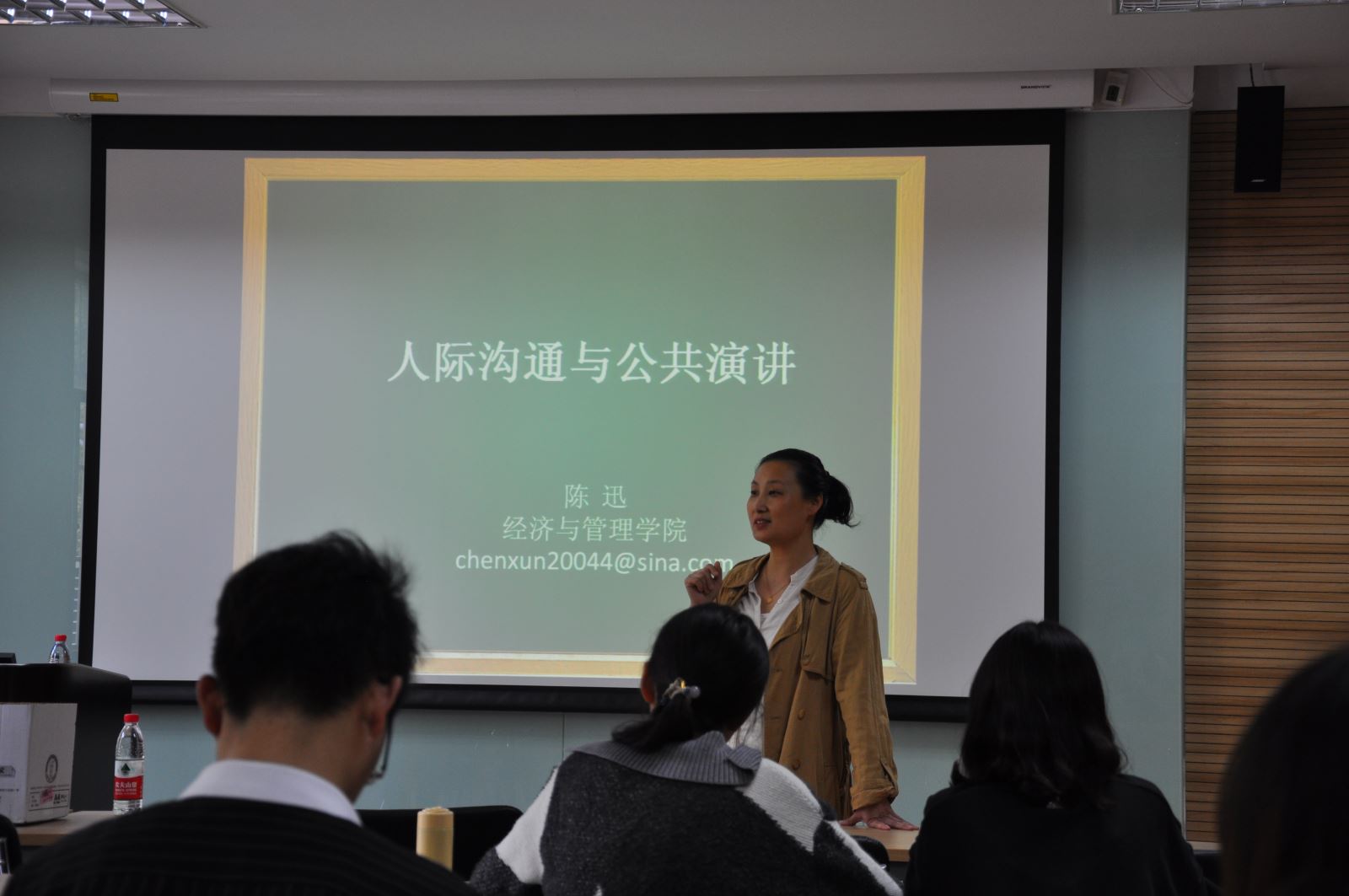 4月28日中午,化学系邀请经济与管理学院研究生党总支书记兼市场推广与职业发展中心主任陈迅老师在化学馆120举办了“演讲与沟通技巧”专题讲座。