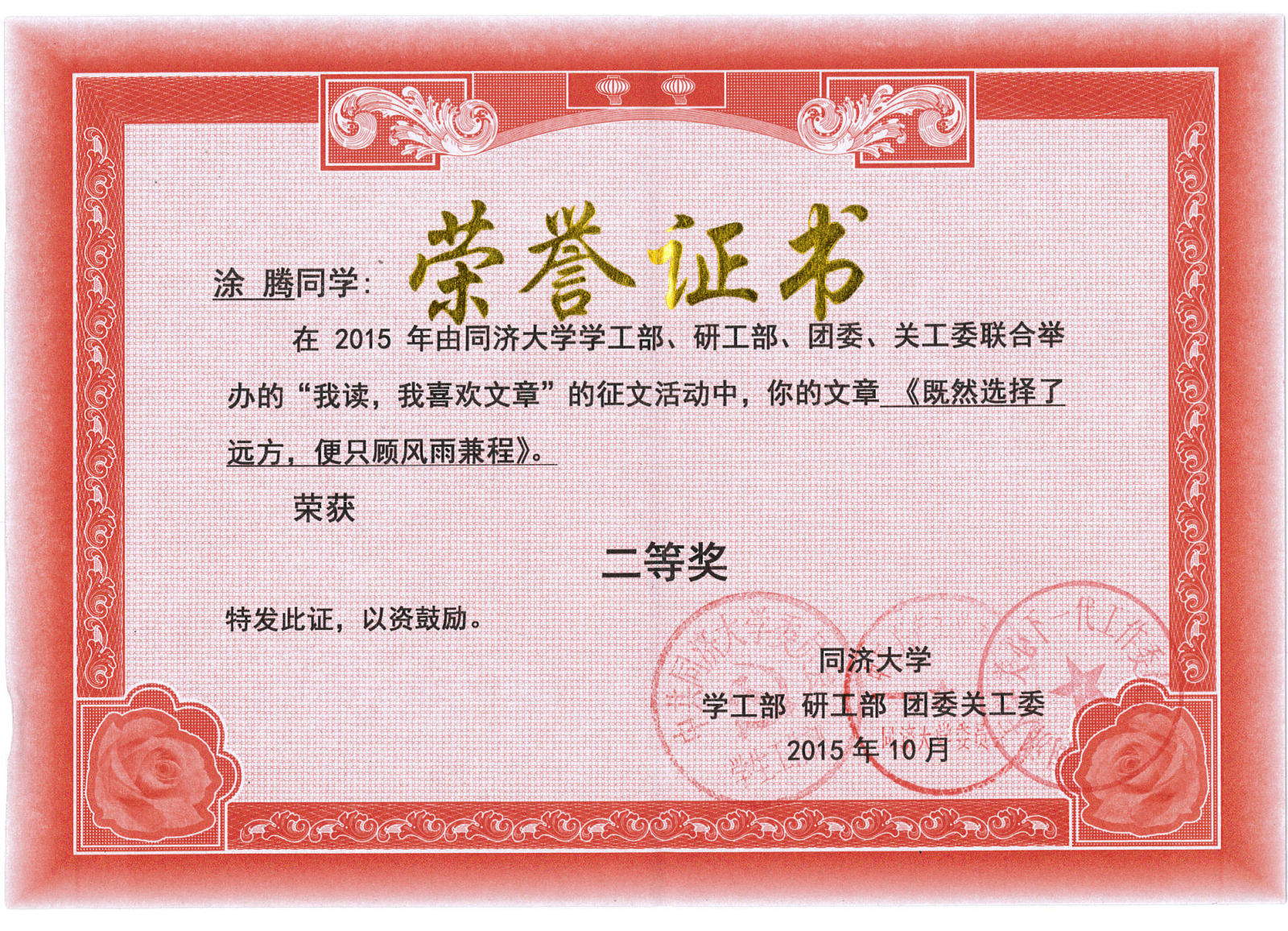 “我读,我喜欢文章”网上阅读活动读后感征文比赛于今年上半年由学校员工工作部、研究生工作部、校团委和关心下一代工作委员会共同举办,旨在促进关工委网站与读者交流互动,落实网站为青年和员工健康成长服务、做青年知心朋友的宗旨,特面向校内青年和员工,征集针对本关工委网站发表文章的读后感、评论、随笔或杂谈。