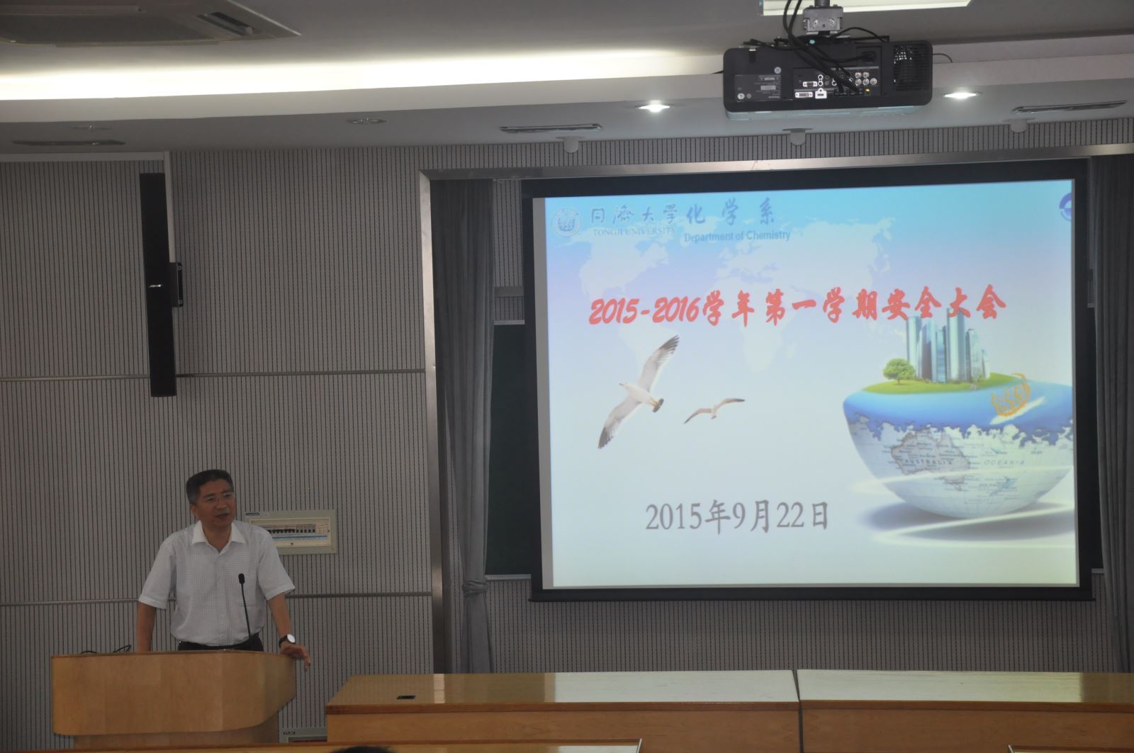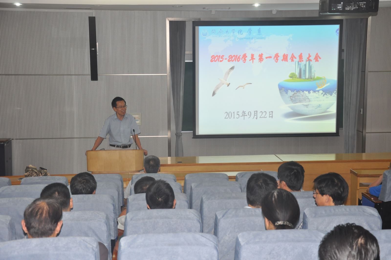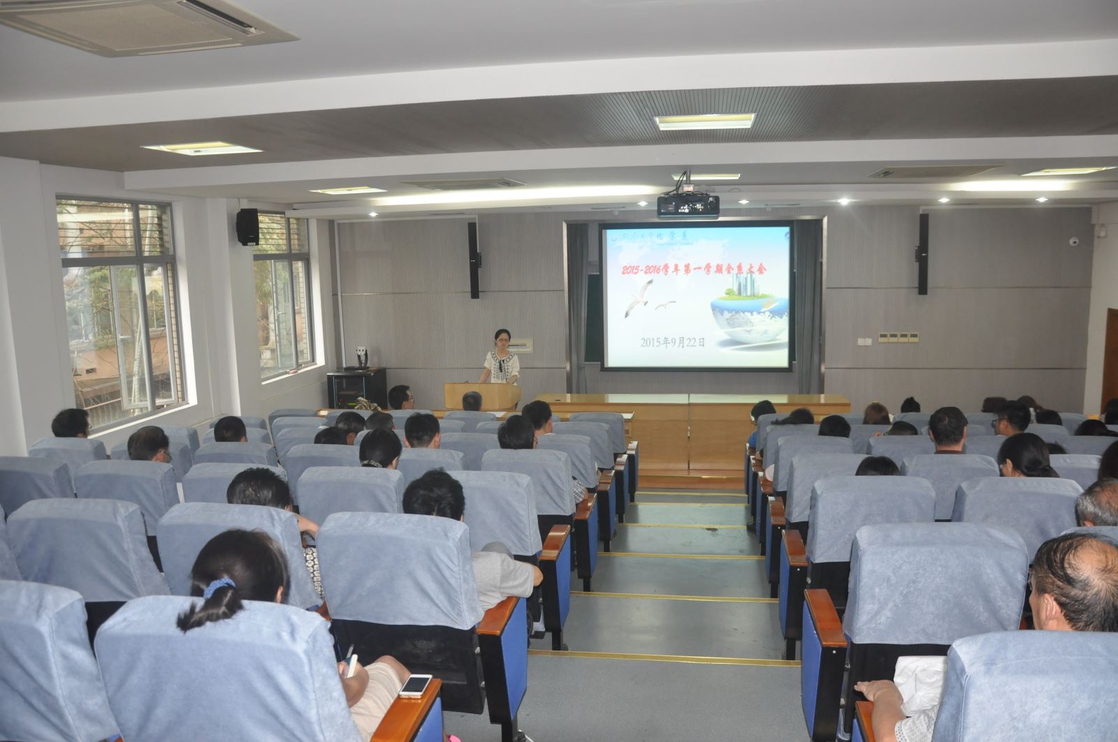 9月22日下午,新学期教职工大会在化学馆241报告厅举行,全体教职工参加会议。