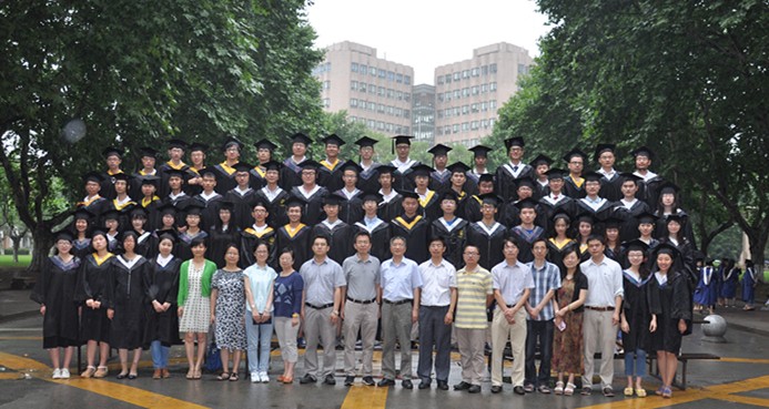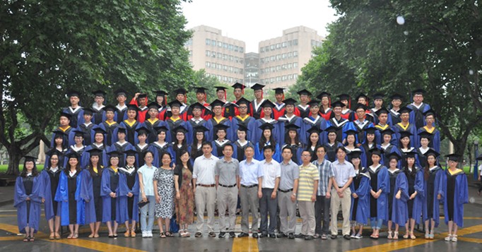 毕业典礼开始前,全体毕业生与系领导、教师代表在毛主席像前合影留念。