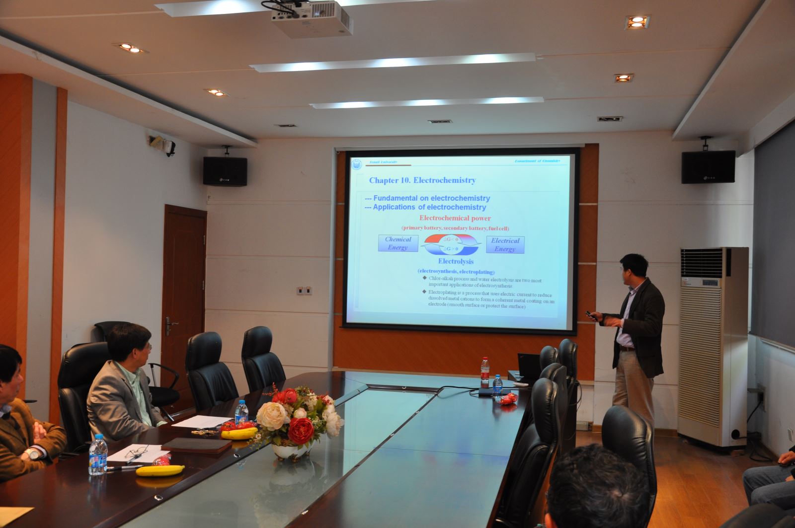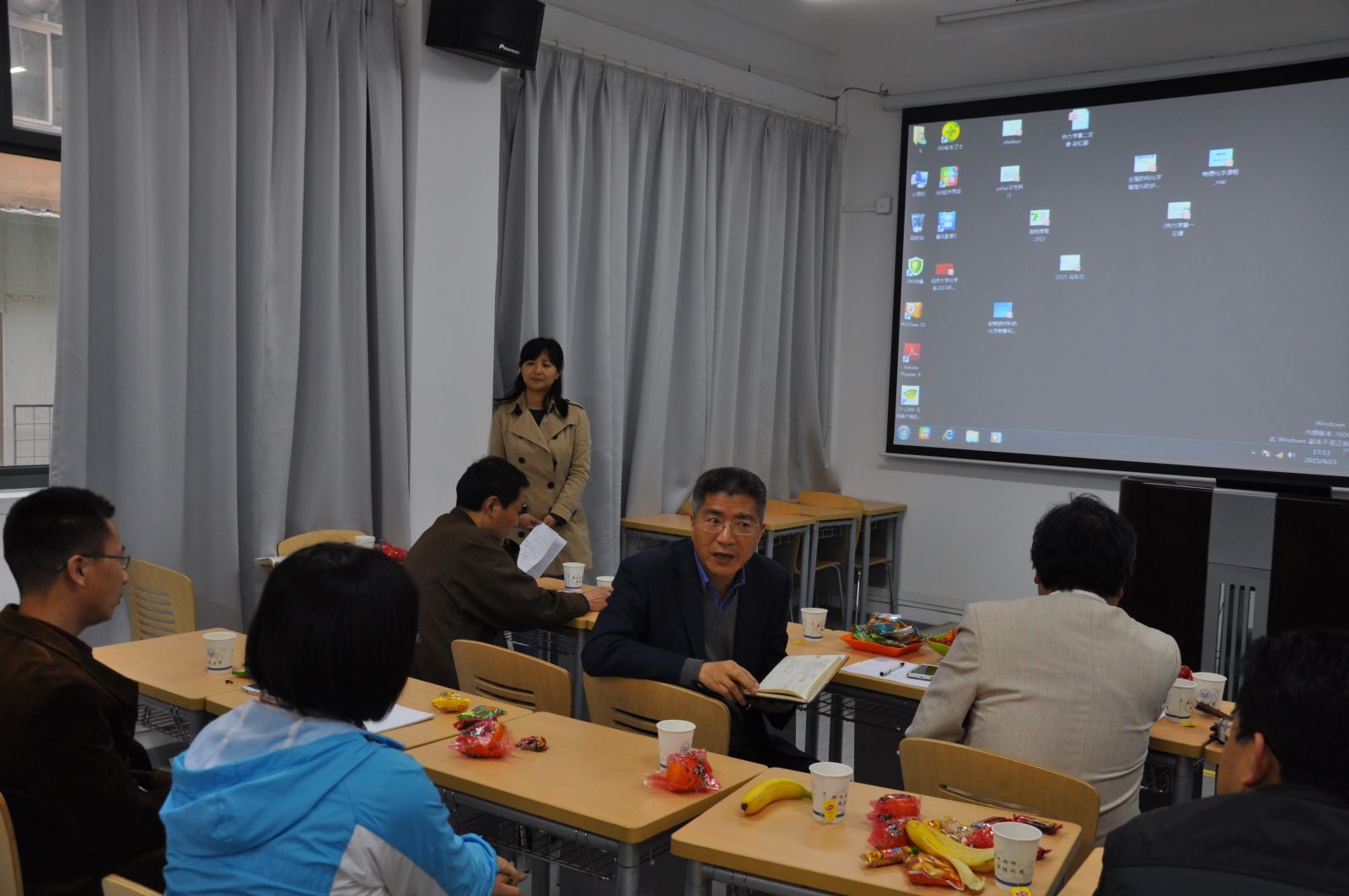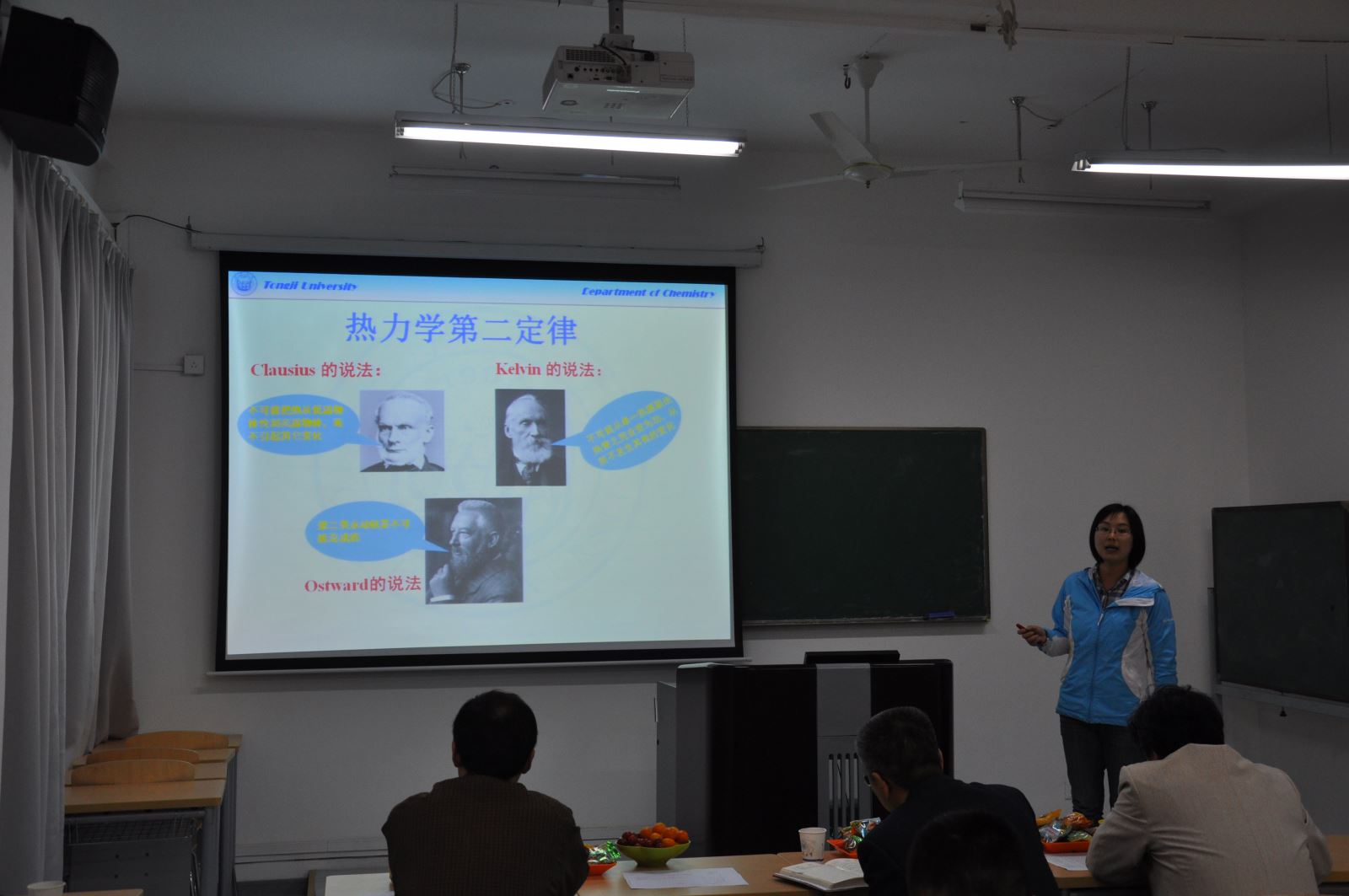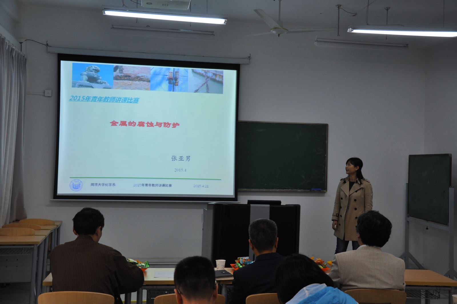 4月21日下午,化学系一年一度的青年教师讲课竞赛举行,本次竞赛分为外语组和中文组竞赛,共有来自各教研室14位在岗40岁以下青年教师参加。