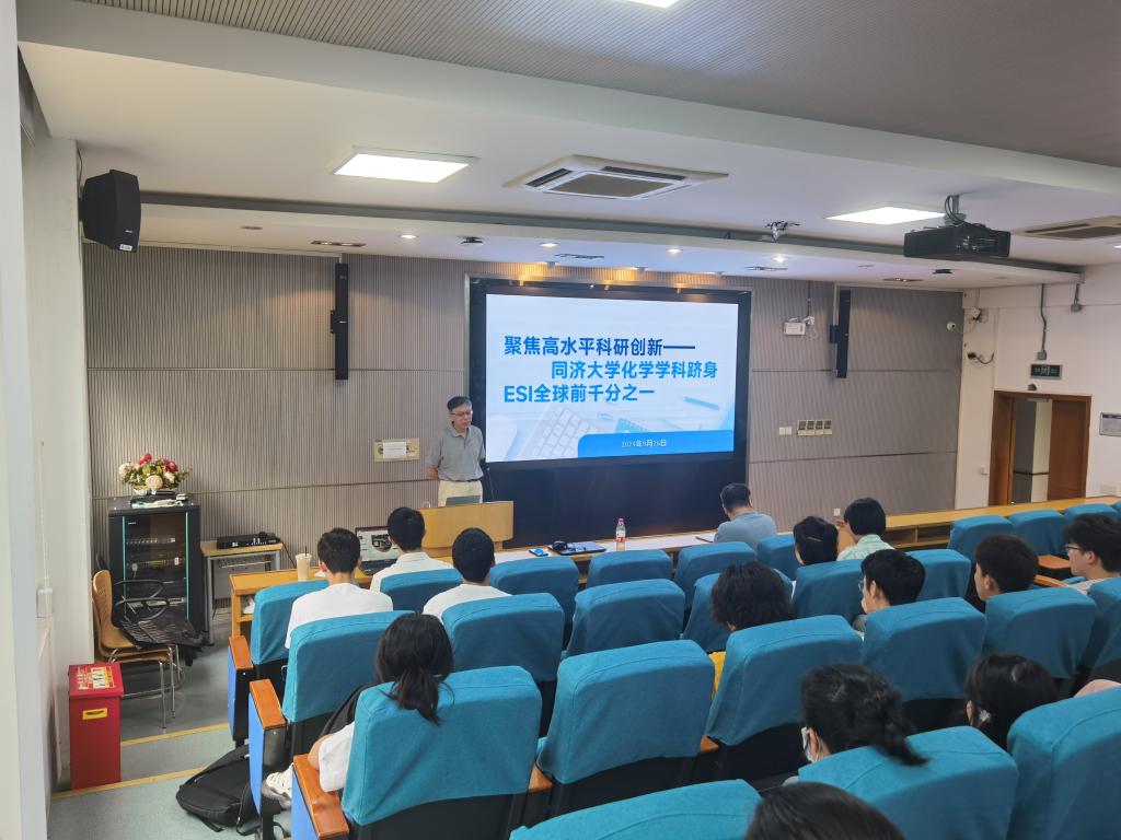 张老师首先代表全院老师,对所有同学的到来表示热烈的欢迎!而后介绍了近年来化学学科发展的情况、同济化学科研平台建设、同济化学科研创新方面的工作情况等,帮助同学们建立对学院、对学科的初认识、增强专业认同感。