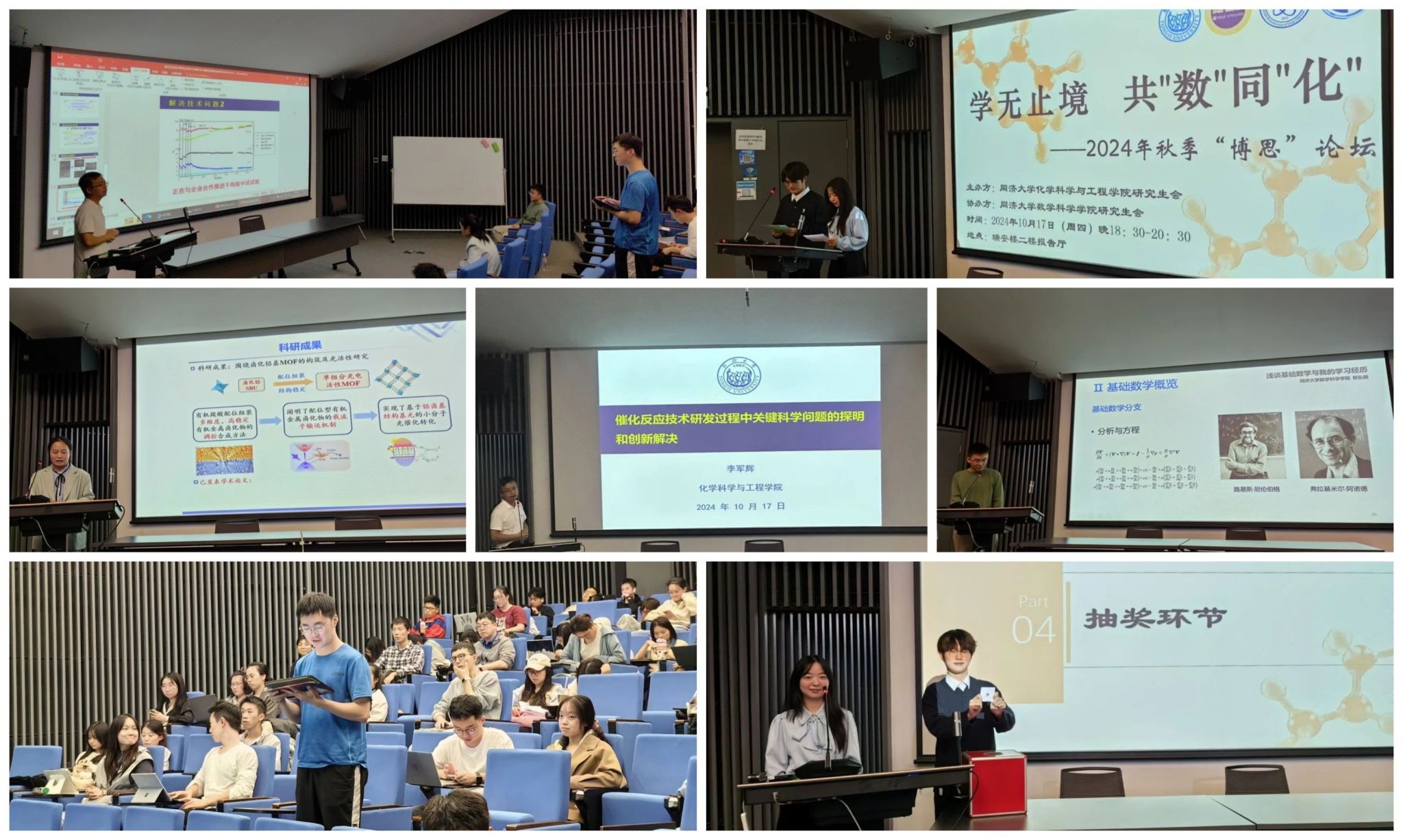 10月17日,由best365中国官方网站研究生会联合数学科学学院研究生会承办的博思论坛——“学无止境,共‘数’同‘化’”分享会在瑞安楼二楼报告厅举行。来自化学、数学等多个学院100余位员工参与分享会。best365中国官方网站青年教师李军辉、在站博士后姜一琳和数学科学学院优秀博士研究生张弘毅应邀分享科研工作经验和学术成果。