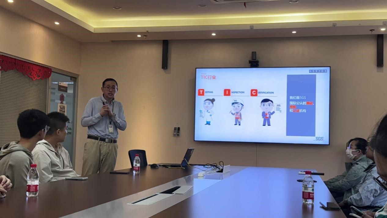 抵达SGS通标标准技术服务有限公司之后,SGS人事部门徐经理热情地接待师生,并详细介绍了SGS公司的发展历史、业务范围、公司使命以及公司分布。他还介绍了公司以“诚信为本,人才为本”的理念和公司面对化学化工等硕博应届生的质优生项目。