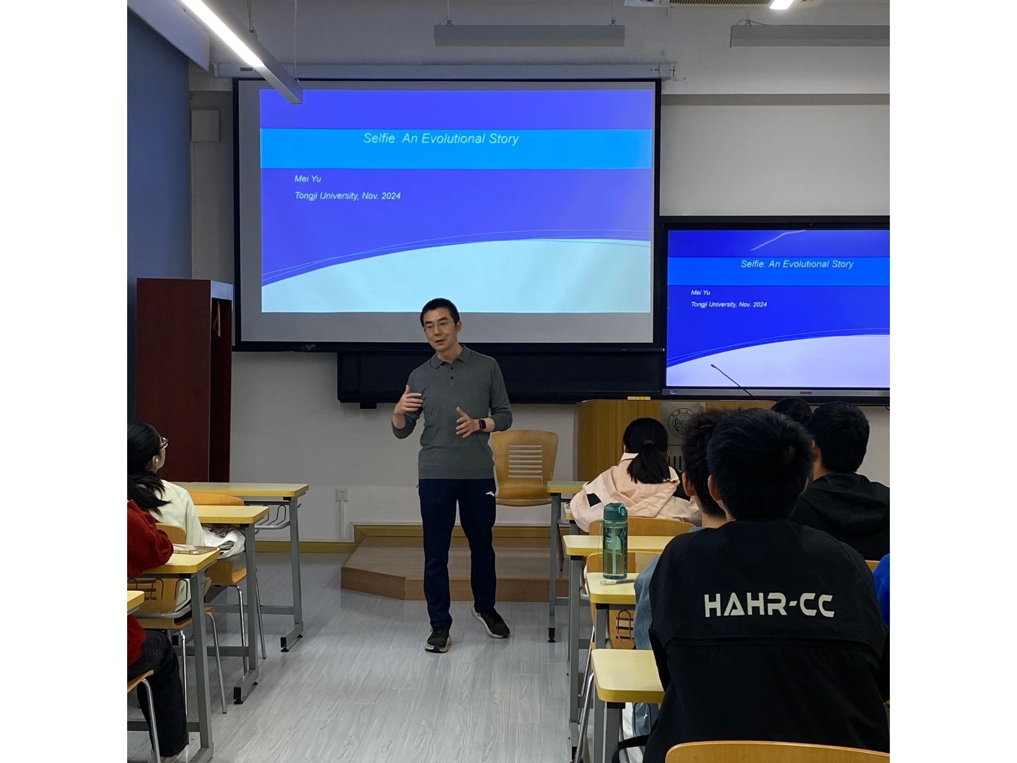 11月15日下午,best365中国官方网站优秀毕业生梅雨——现任润英联战略采购经理,为大一的同学们带来了一场别开生面的精彩讲座。讲座伊始,梅雨便热情地展示了带来的礼物,并风趣地讲到:那些勇于提问、善于提出好问题的同学将有机会赢得这些奖品,这一番话瞬间激发了同学们浓厚的兴趣与好奇心。此次讲座一改传统讲座的严肃氛围,转而聚焦于一个新颖的主题——“自拍”的演变历程。