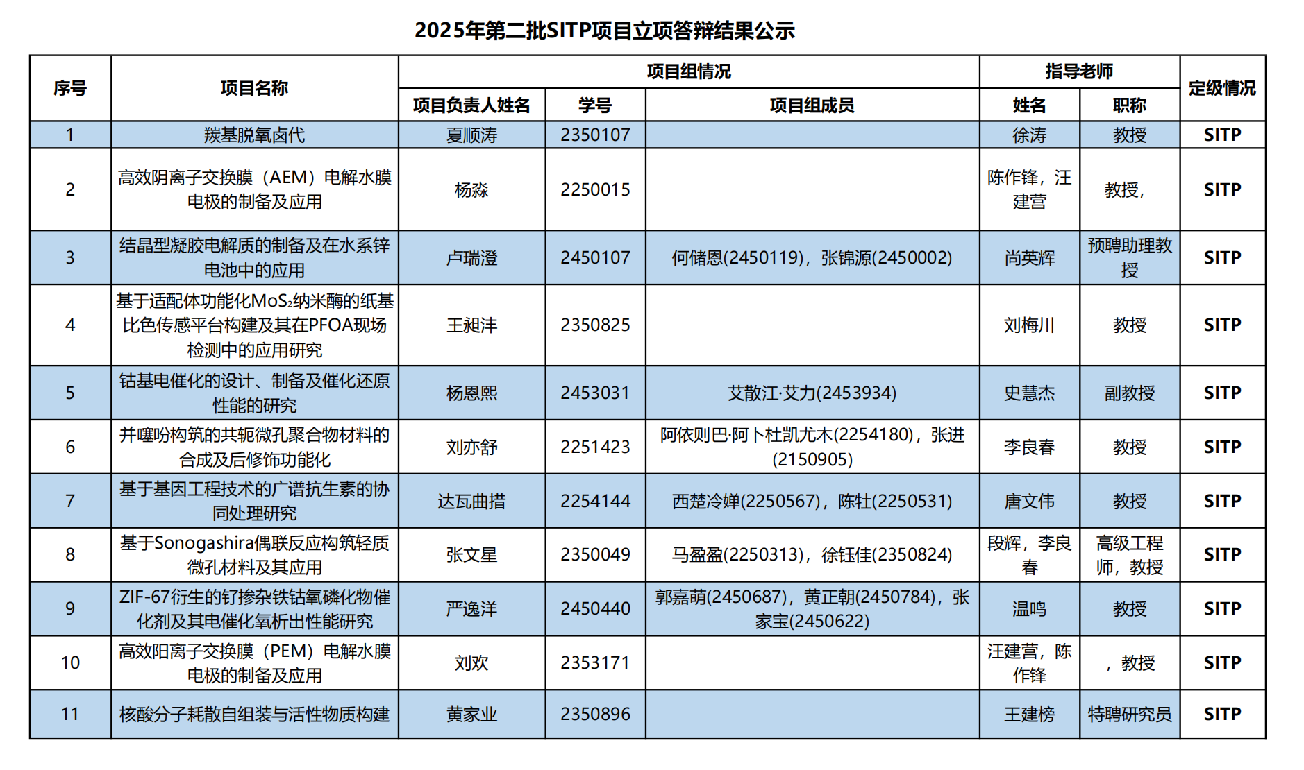 年第二批SITP项目立项答辩圆满结束,现将结果公示如下。