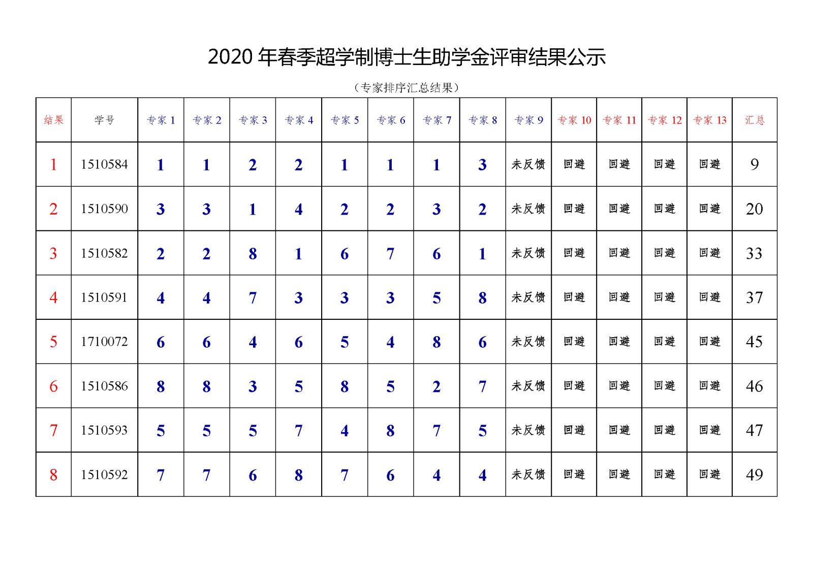 按照超学制助学金评审条件,学院对申请人材料进行初审并征求相关申请人及导师意见后,8位申请人达到相关条件。学院组织评审委员会开展通讯评审,对符合条件的申请人进行排序,现将结果及申请人有关支撑材料公示如下。
