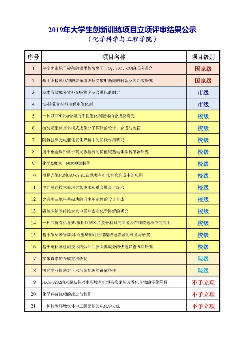 2019年老员工创新训练项目立项评审结果公示